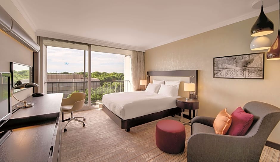 This room is 30 sq. m./323 sq. ft. with a king-sized bed (180 x 79 in) and sofa bed for the whole family to stay in one room. A baby cot for the little ones is available upon request. Explore Munich from above with your kids and take in the park or city views (partially limited) from the private balcony. Relax and watch your favorite kids show or a family movie on a range of premium channels on the 42-inch plasma TV. Plan your trips in and around Munich using WiFi access in the comfort of your room.